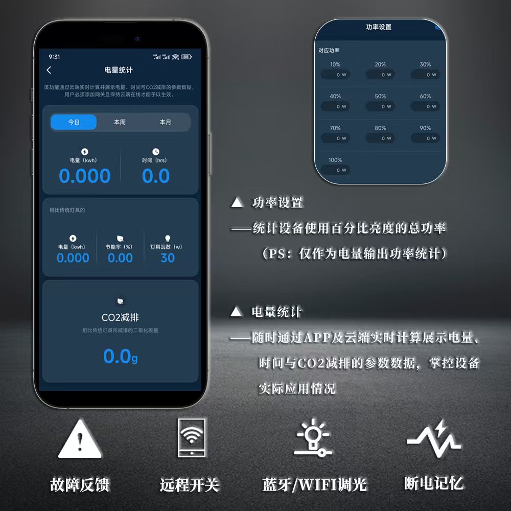 远程智控,跨越空间:即便身处异地,也能通过手机远程操控灯具。下班途中突然想起客厅灯未关,或是发现办公室的灯光还亮着,甚至是想要根据停车场的实时情况调节亮度,只需在手机上轻轻一点,即可轻松解决,随时随地为你省心省力。